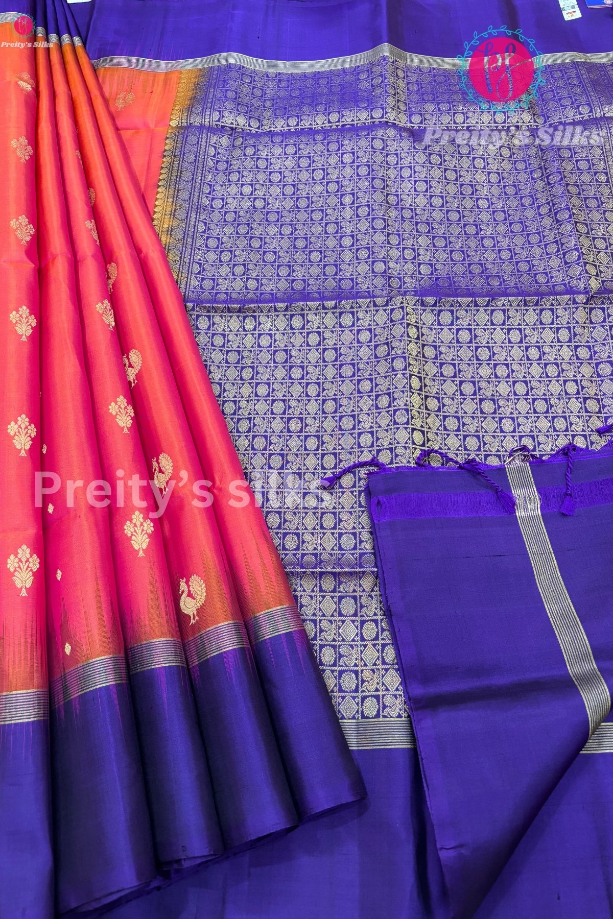 Pure Kanchipuram Soft Silk Saree- Dual Shades pink With Purple - PF13561