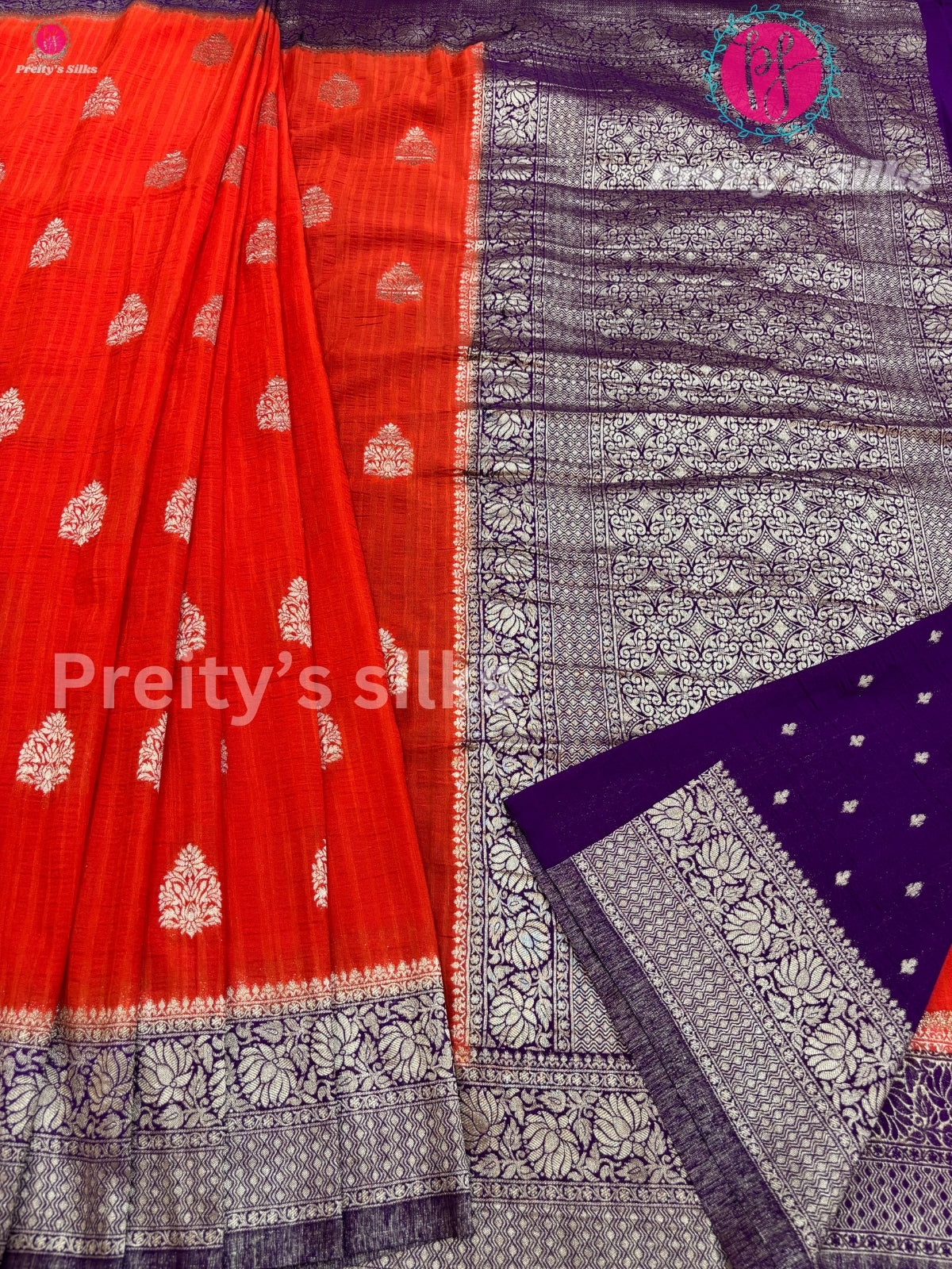 Semi Banarasi Georgette Saree - Orange with Purple- PF45679