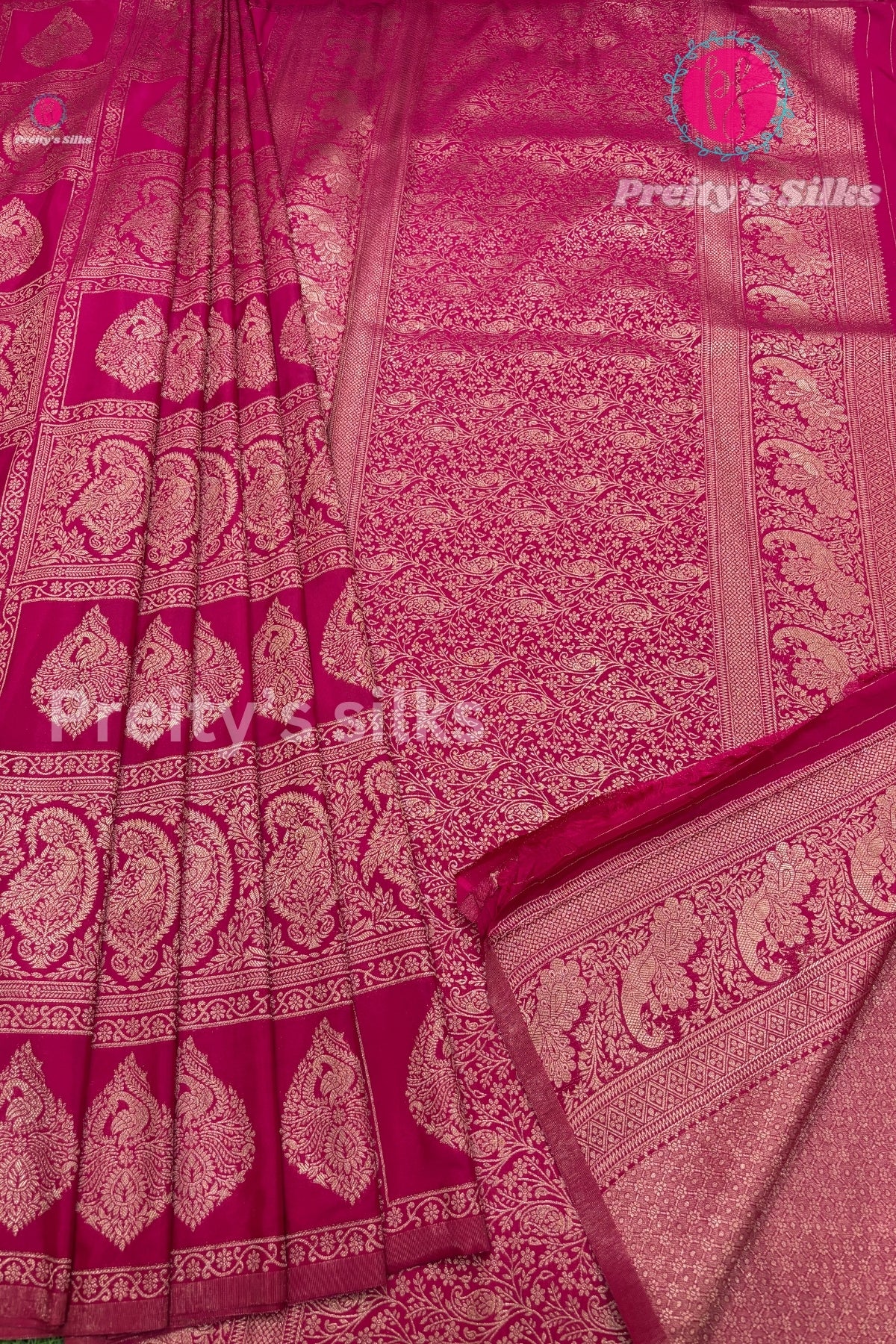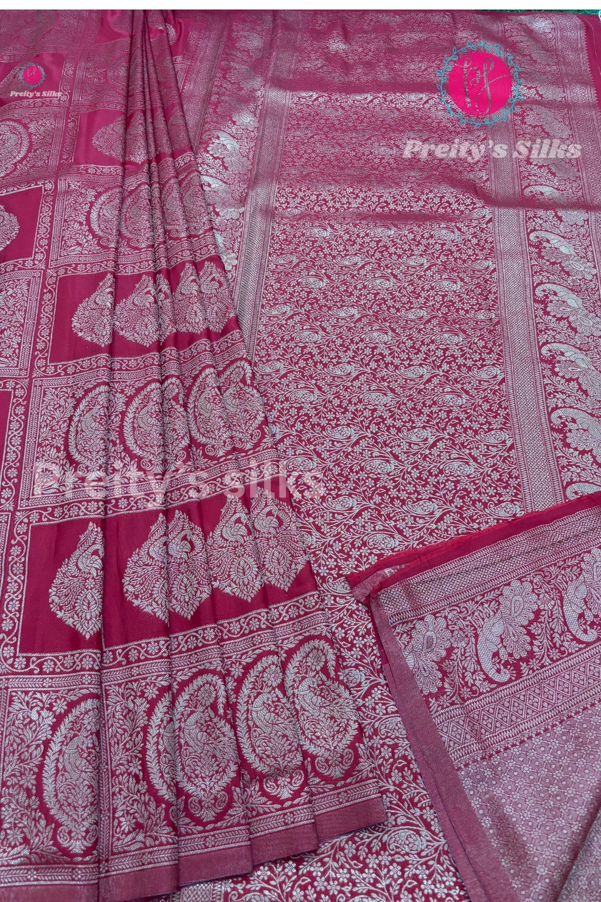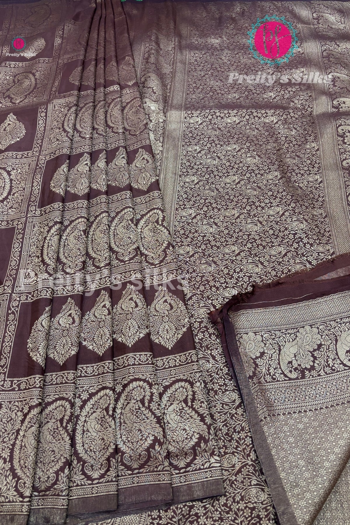Description: This Semi Mysore Crepe Silk Saree features an exquisite full brocade design that exudes royal elegance. Woven with intricate golden motifs, it reflects the grandeur of traditional Mysore craftsmanship. The soft crepe silk fabric offers a smooth texture and graceful fall, enhancing comfort and style. Its lustrous sheen adds a regal touch, making it perfect for festive and wedding occasions. A timeless blend of tradition and luxury, this saree is truly a statement piece.