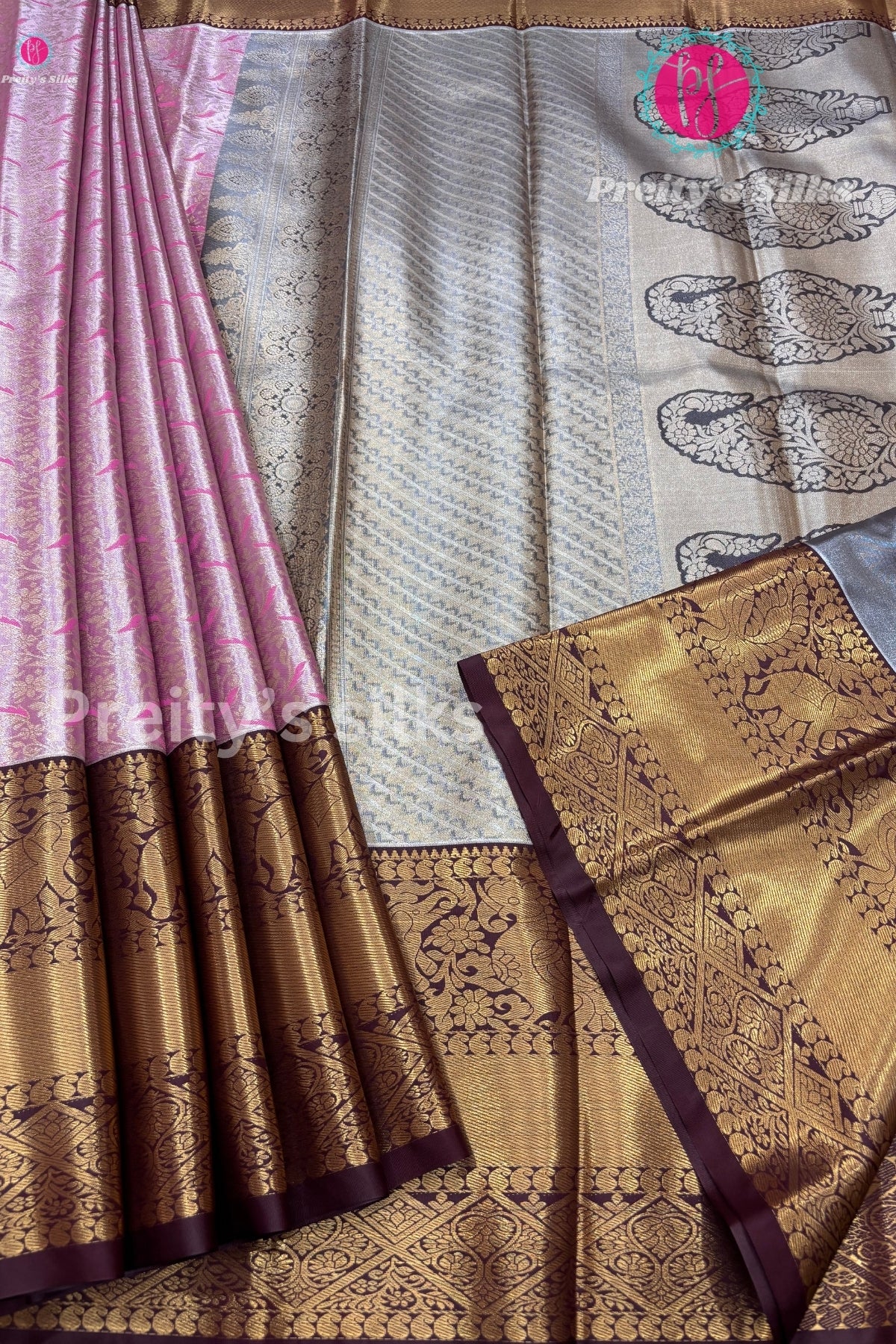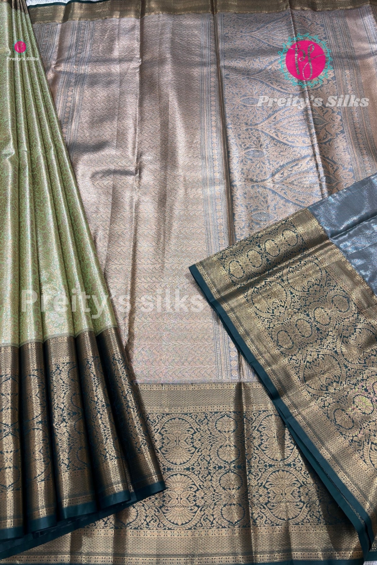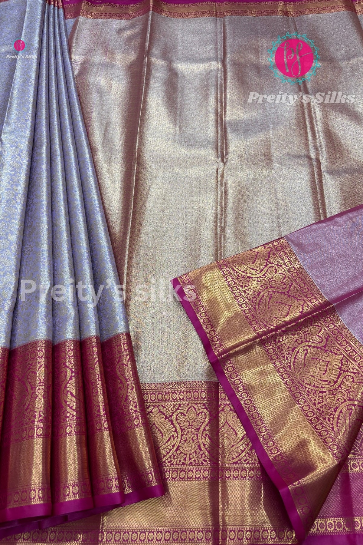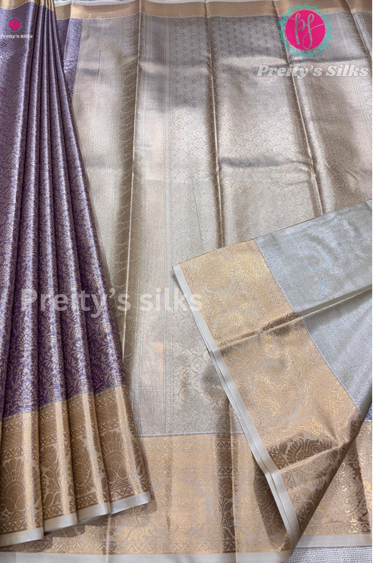 This Semi Tissue Kanchipuram Silk Saree radiates a perfect blend of traditional grandeur and modern elegance. Crafted with a mix of silk and tissue, it features a soft sheen that enhances its rich, festive appeal. The saree is adorned with intricate zari weaving and a traditional Kanchipuram border, adding a regal touch. Its lightweight texture makes it comfortable to drape while retaining a luxurious fall. Ideal for weddings, festive occasions, and grand celebrations, it beautifully captures the essence of South Indian tradition. Pair it with statement jewelry for a royal look.