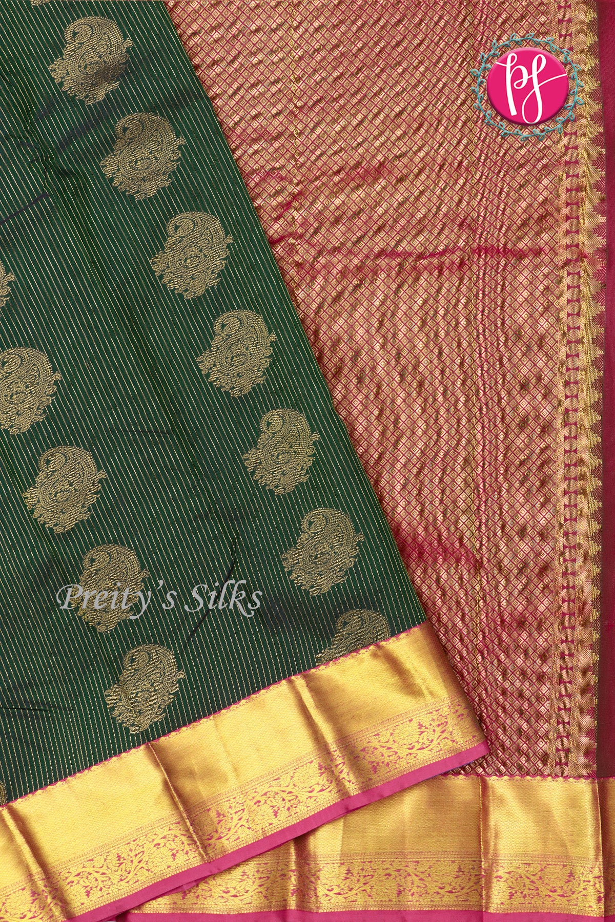Product Description :A Semi Kanchipuram Silk Saree blends the richness of traditional Kanchi weaving with a lightweight, comfortable drape.