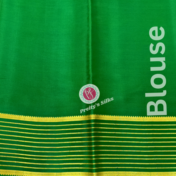 Showcasing a beautiful color combination with a gracefully plain body, complemented by a contrasting border highlighted with delicate gold zari lines. Finished with a rich, elegant pallu and a plain matching blouse — timeless sophistication in every drape!