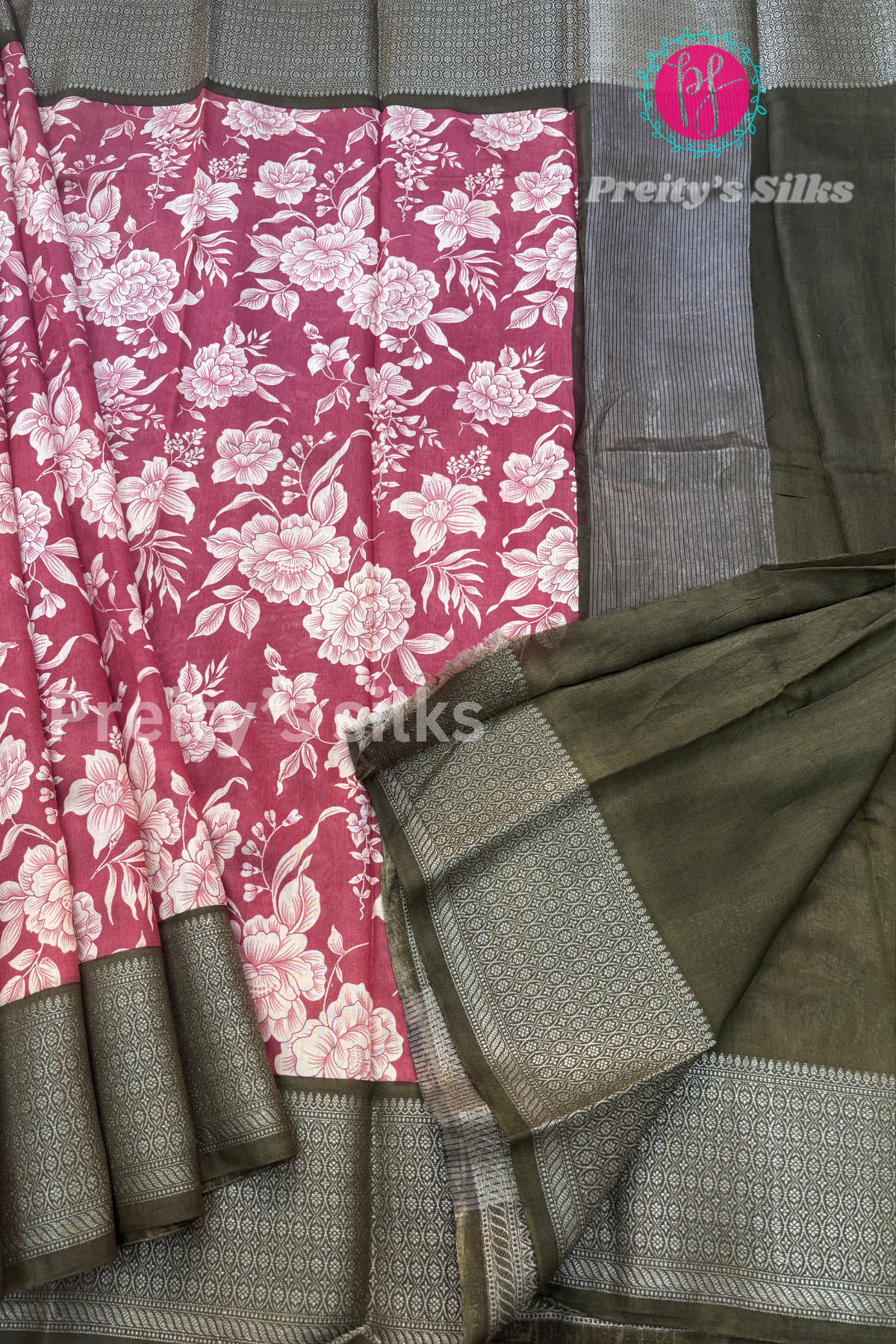 CHANDERI COTTON SILK SAREE- PY61971-Reddish pink with mehendi Green