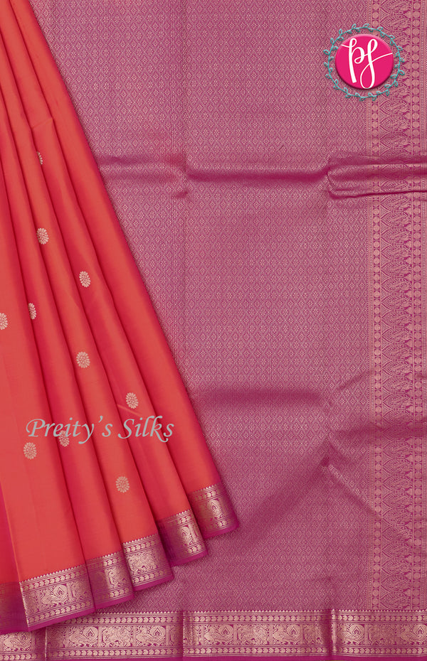 Its soft silk texture offers a smooth, luxurious feel while maintaining the signature Kanchipuram elegance.The saree features beautifully woven motifs and vibrant colours that highlight its festive charm.Durable yet delicate-looking, it drapes gracefully and suits all body types.