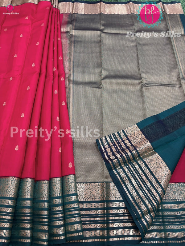 Half Pure Kanchipuram Silk Saree -Red with Bottle green - PF18873
