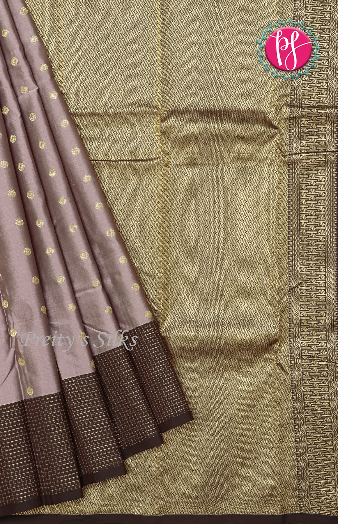 Half Pure Kanchipuram Silk Saree-Lilac With Dark Brown-PF30368