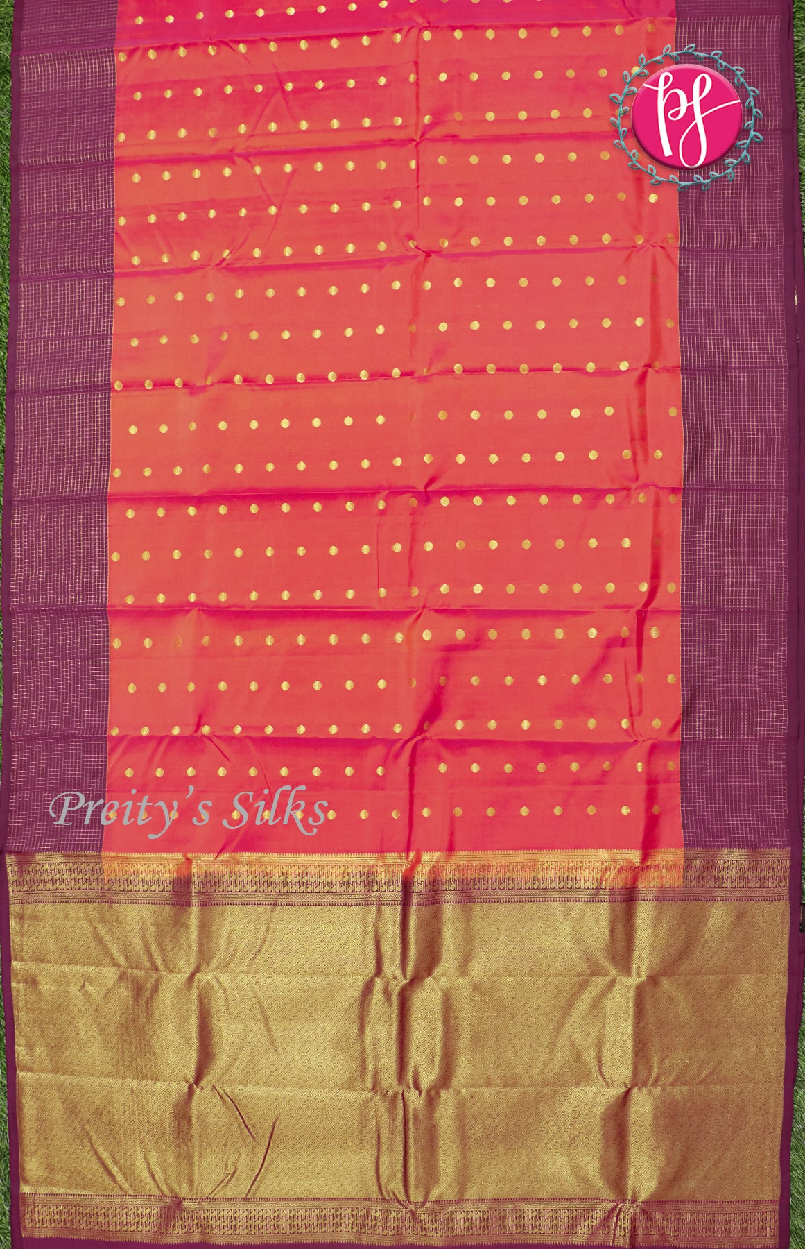 Its soft silk texture offers a smooth, luxurious feel while maintaining the signature Kanchipuram elegance.The saree features beautifully woven motifs and vibrant colours that highlight its festive charm.Durable yet delicate-looking, it drapes gracefully and suits all body types.