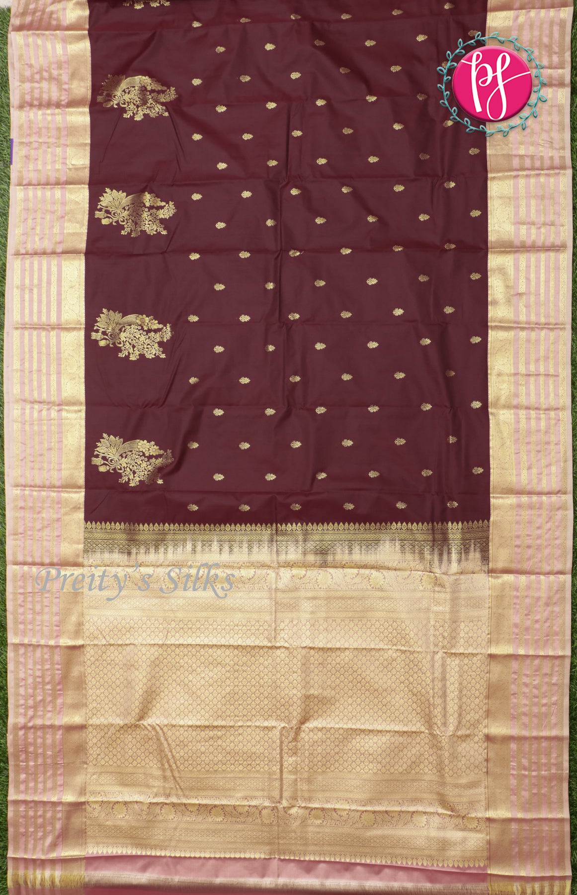Its soft silk texture offers a smooth, luxurious feel while maintaining the signature Kanchipuram elegance.The saree features beautifully woven motifs and vibrant colours that highlight its festive charm.Durable yet delicate-looking, it drapes gracefully and suits all body types.