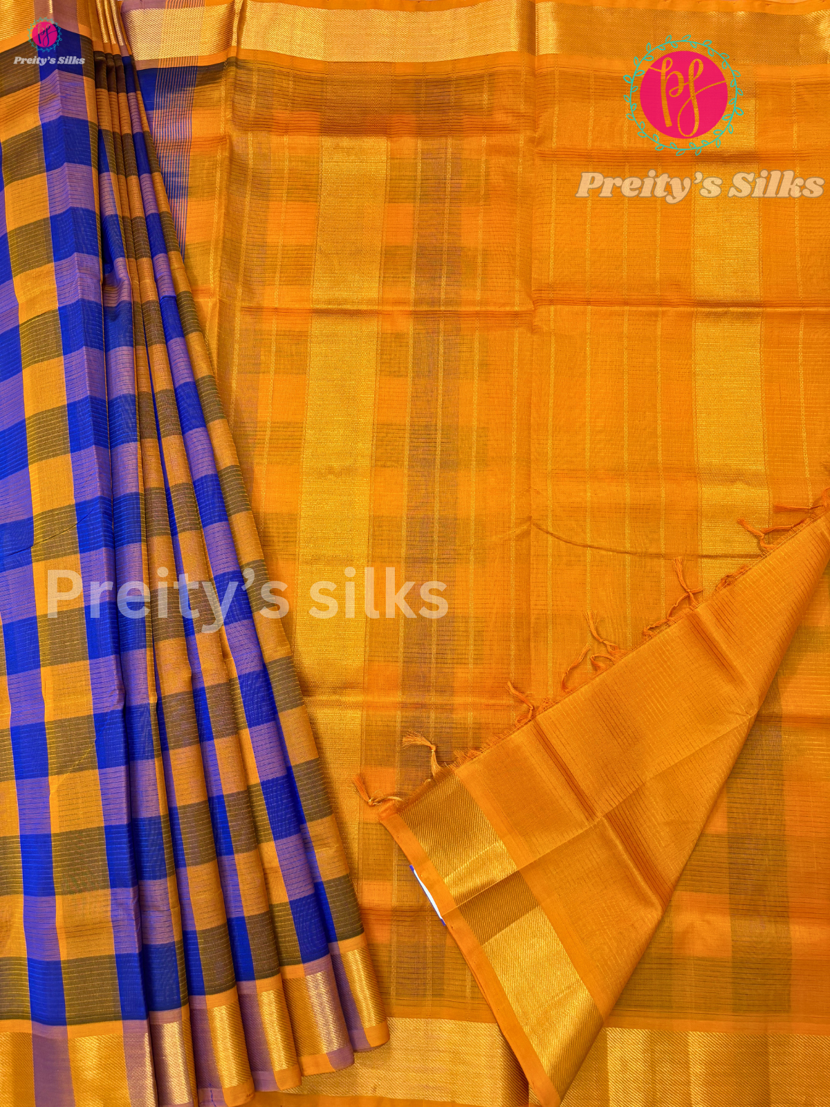 Pure Cotton silk Saree -Mustard Yellow with with Purple- PF42569