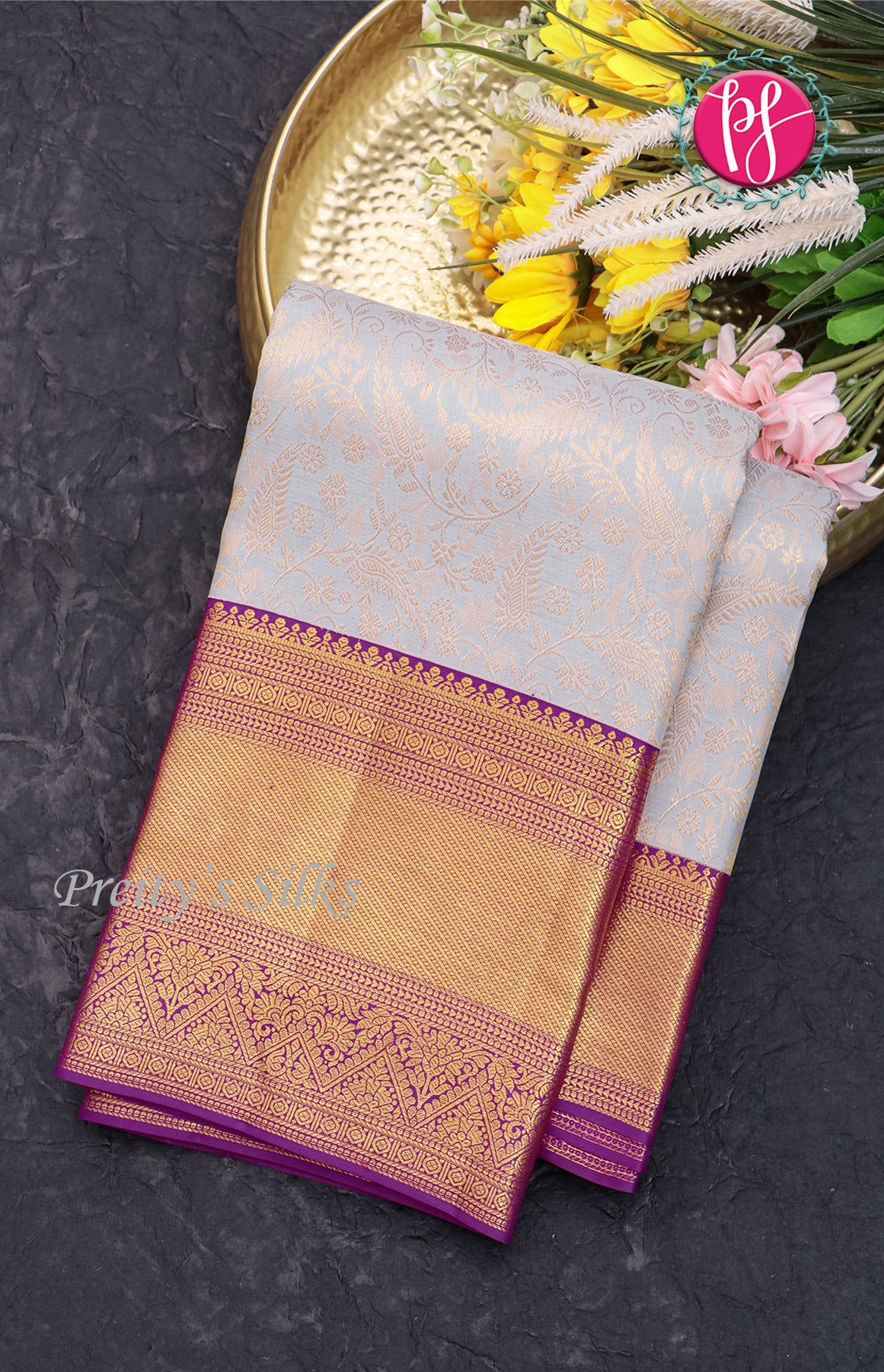 Pure Kanchipuram Silk Saree-Cream And Lavender-PF55516
