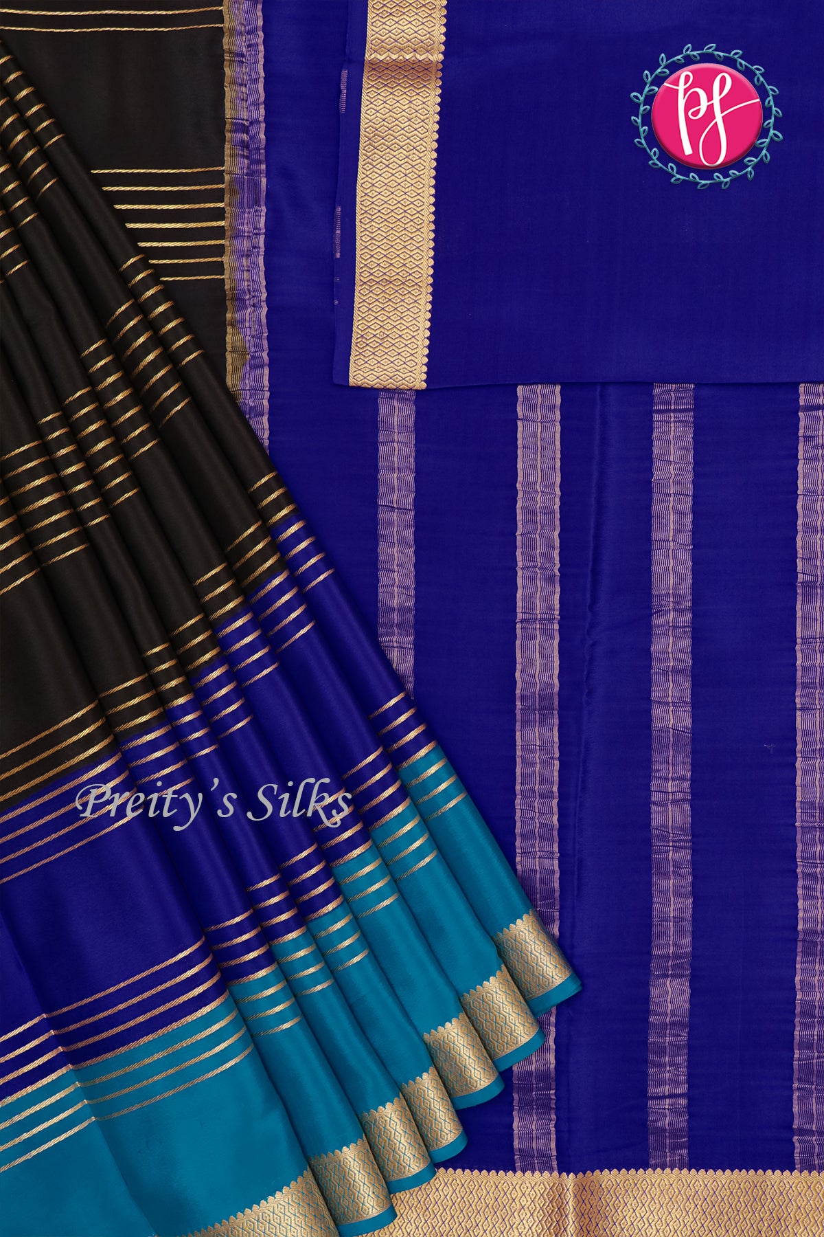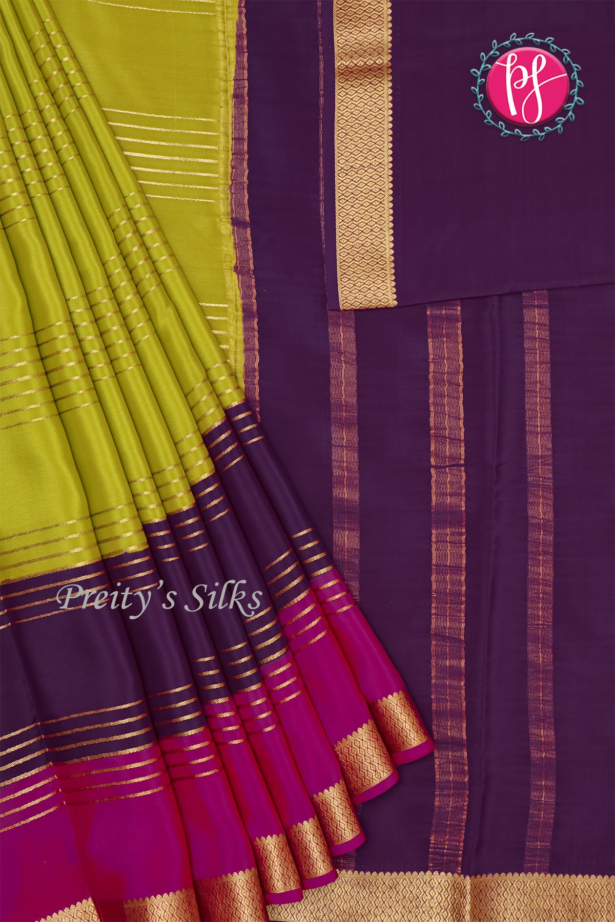 The zari stripes and traditional detailing enhance its classic Mysore charm.