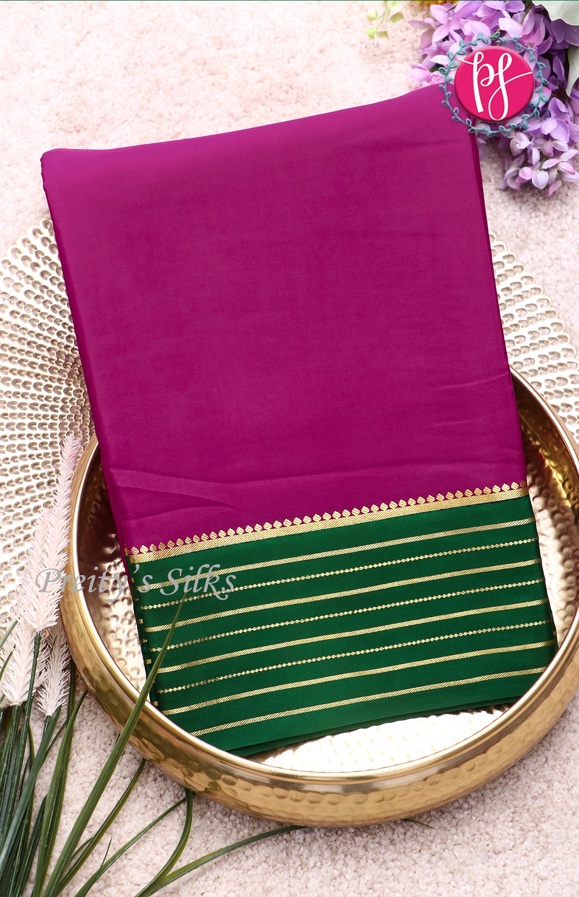 Pure Mysore Crepe Silk Saree With Line Border-Mejentapink And Green-PF39191