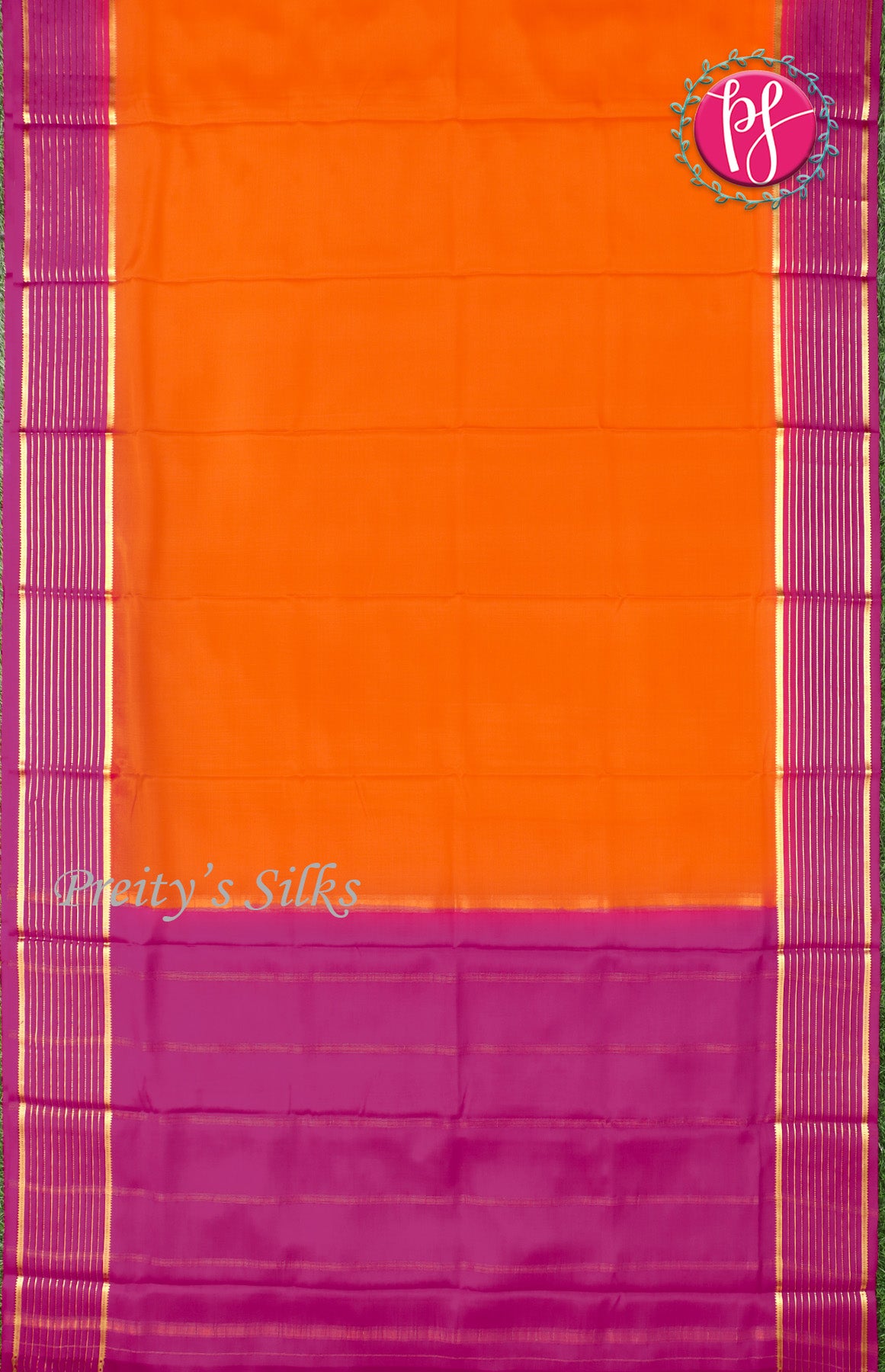 Pure Mysore Crepe Silk Saree With Line Border-Orange And Mejentapink-PF39189