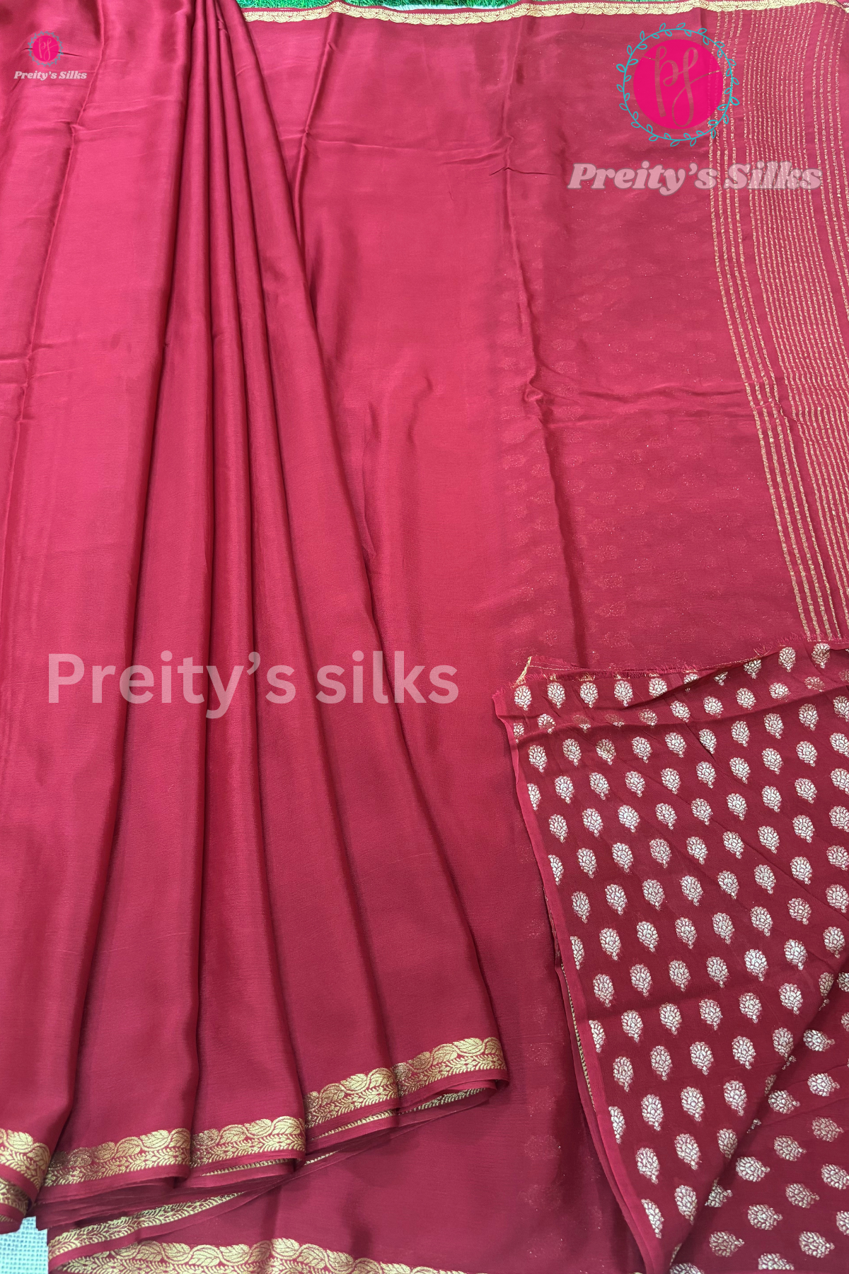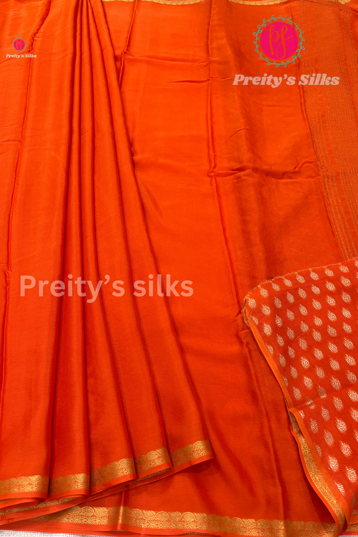 Product Description : A Semi Crepe Silk Saree exudes refined elegance with its soft, smooth texture and graceful fall.Crafted with a subtle sheen, it drapes beautifully, highlighting every movement with sophistication.The fabric offers a lightweight feel with excellent durability, making it perfect for festive occasions and celebrations.
