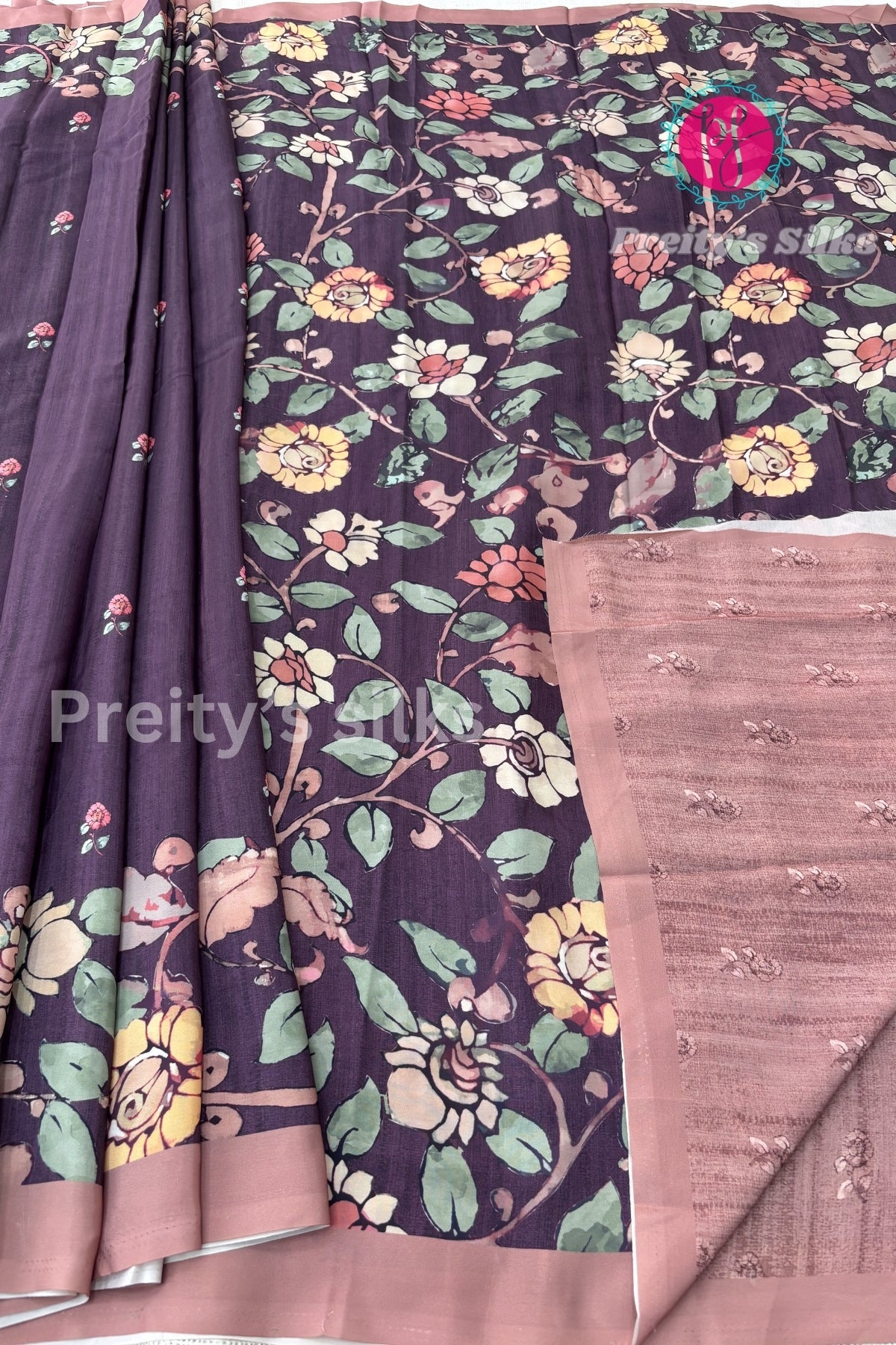 Product Description :This Semi Crepe Silk with Floral Printed saree is a graceful blend of elegance and comfort, perfect for any occasion. The smooth, flowing fabric drapes beautifully, giving a flattering fall. A delicate floral Prints adds charm along the saree, enhancing its feminine appeal. The highlight is the floral pallu, intricately designed to bring out a vibrant yet sophisticated look. Lightweight and easy to carry, this saree is ideal for both festive and casual wear. Pair it with a matching blouse for a refined statement.
