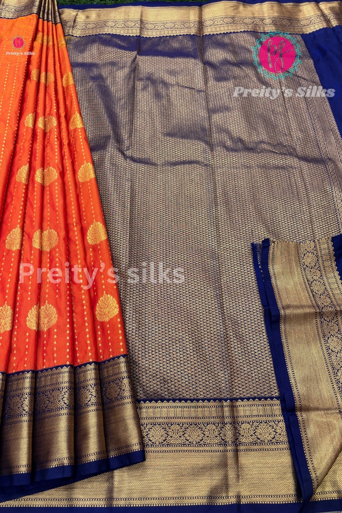 Semi Kanchipuram Silk Saree -Orange with Navy Blue-PF53736