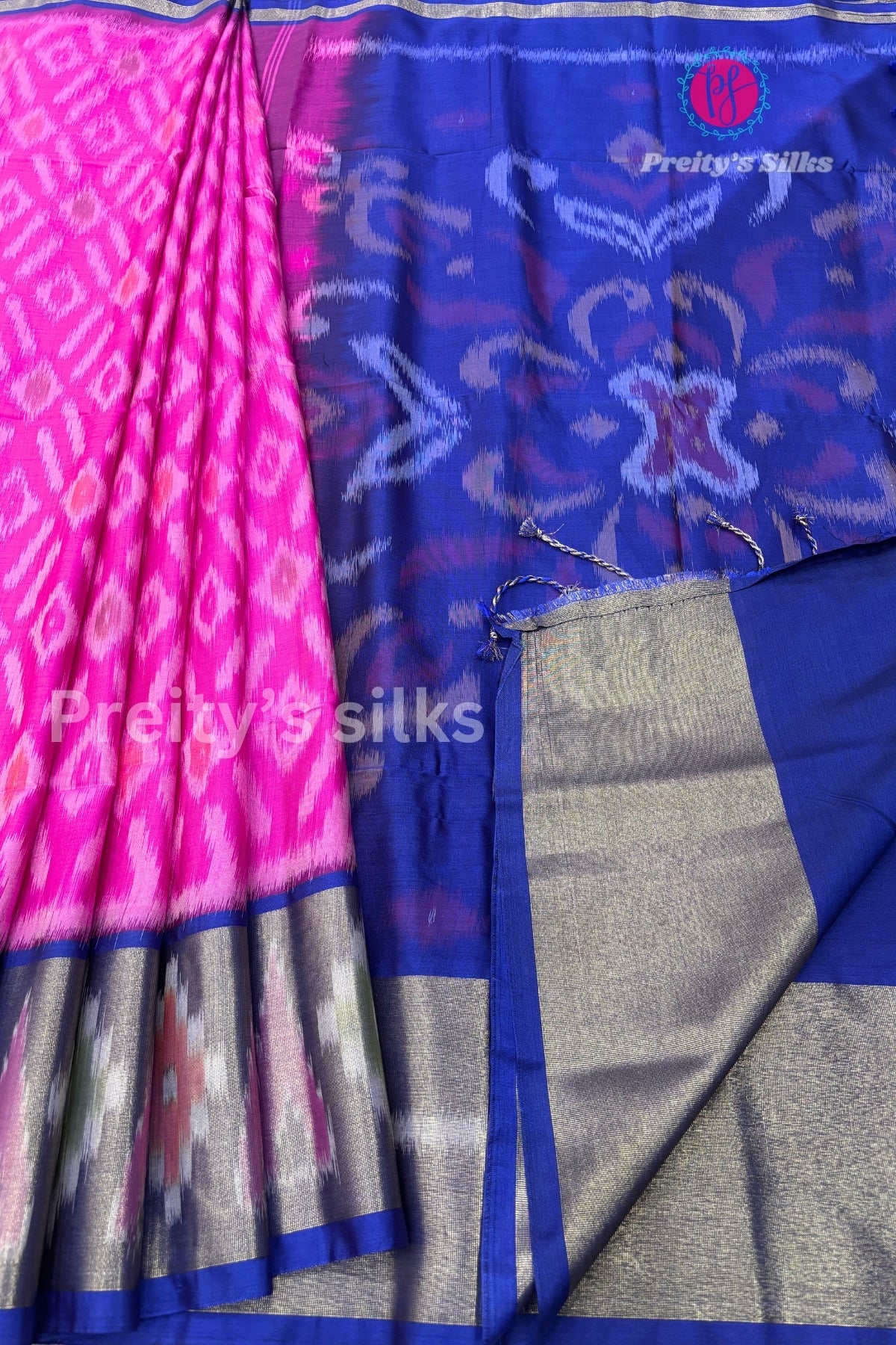 Semi Pochampally Soft Silk Saree-PF44593 - Pink with Royal Blue